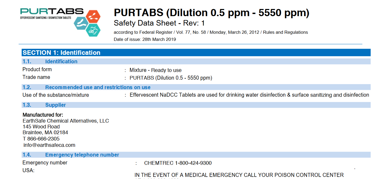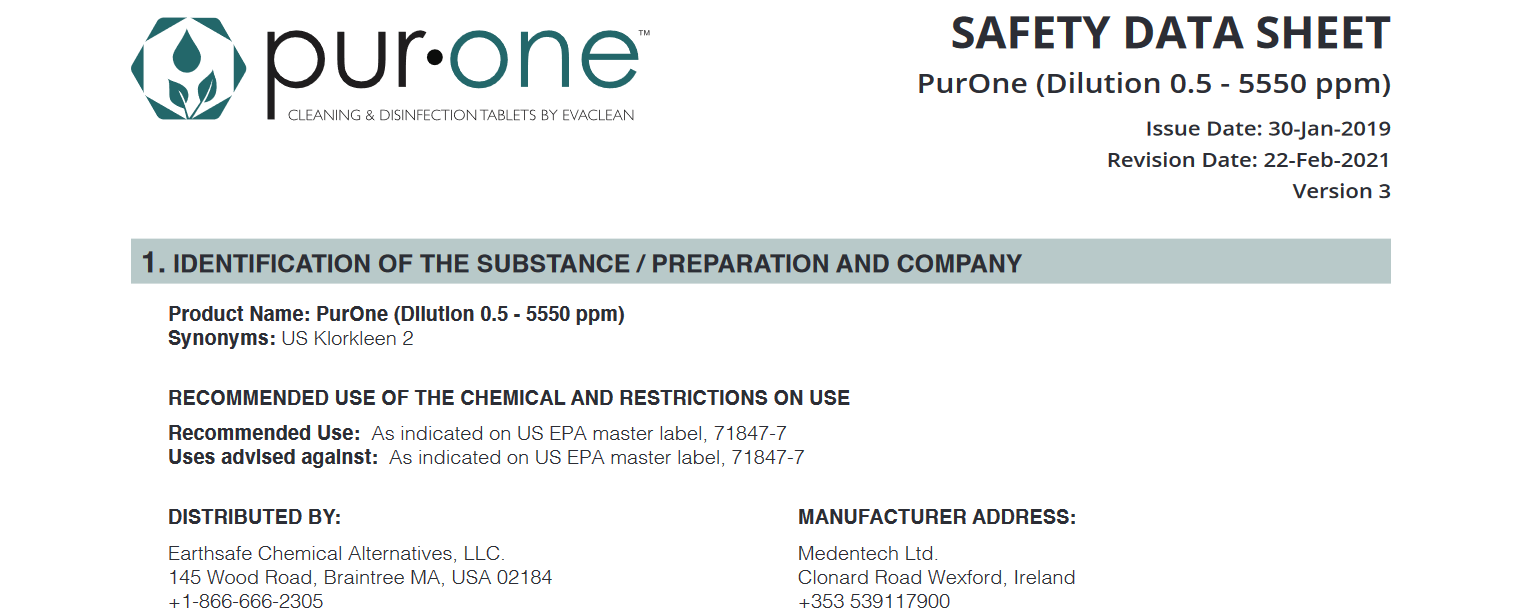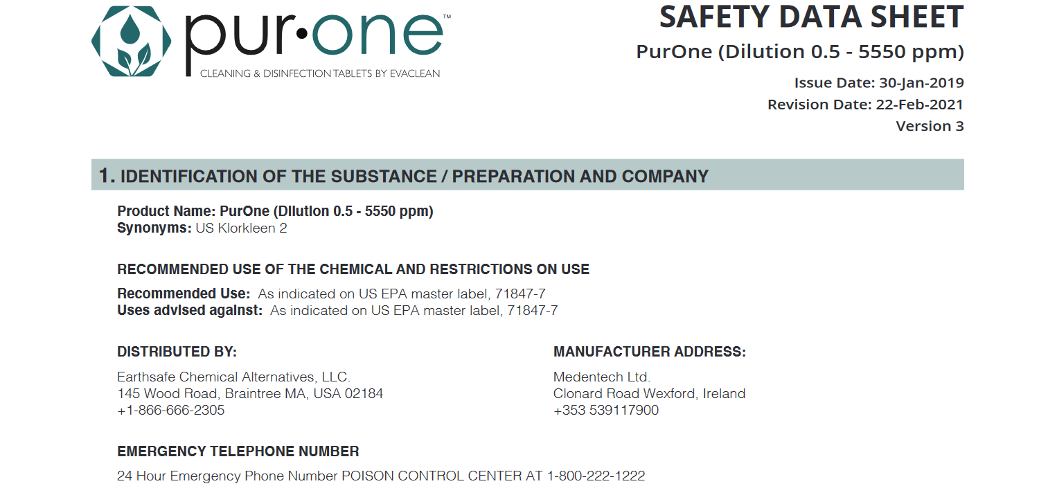 Elevate Janitorial-Evaclean PURTABS SDS Info